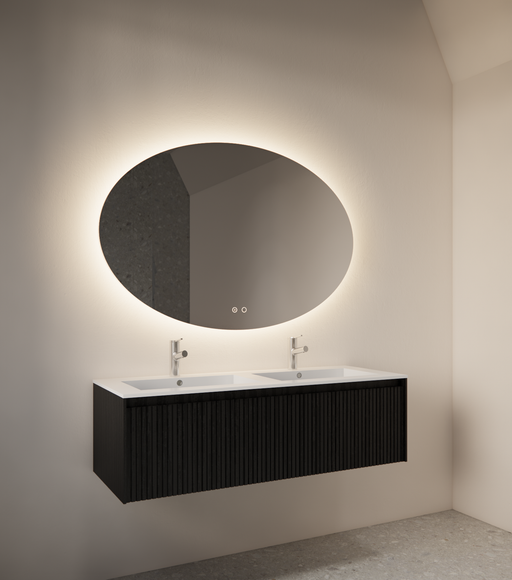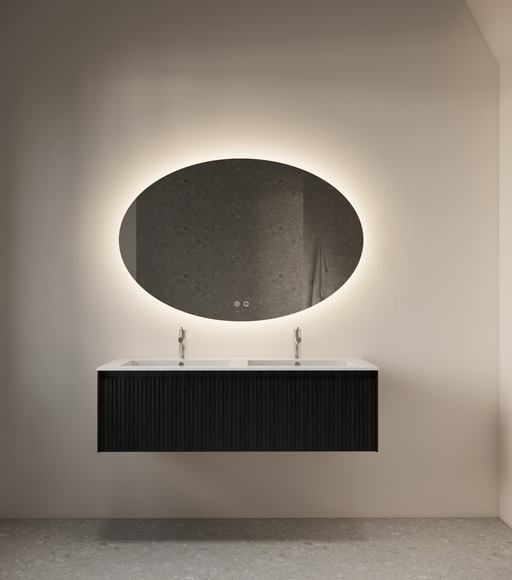 Spiegel Oval combineert elegantie en functionaliteit in een stijlvol ovaal ontwerp. De subtiele achterverlichting werpt een sfeervolle gloed langs ...